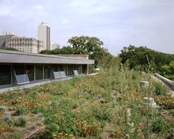 Employed a variety of green and sustainable features. The most successful and visible of these is a vegetative green wall that provides shading of a glass wall during the summer months while allowing winter sunlight to warm the interior building space while serving as part of an infiltration system for stormwater management. This element won a Chicago AIA Divine Detail Award. Other features include extensive native plant palette, living roof, living wall and storm-water infiltration and management.